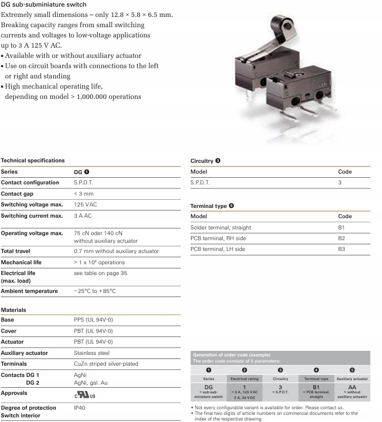 Typ przełącznika: mikroprzełącznik SNAP ACTION